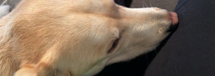 Harley, our sweet, non-formally-trained service pup, was already on high alert—pawing at me nonstop, trying to get me to lie down. He knew before I did.
